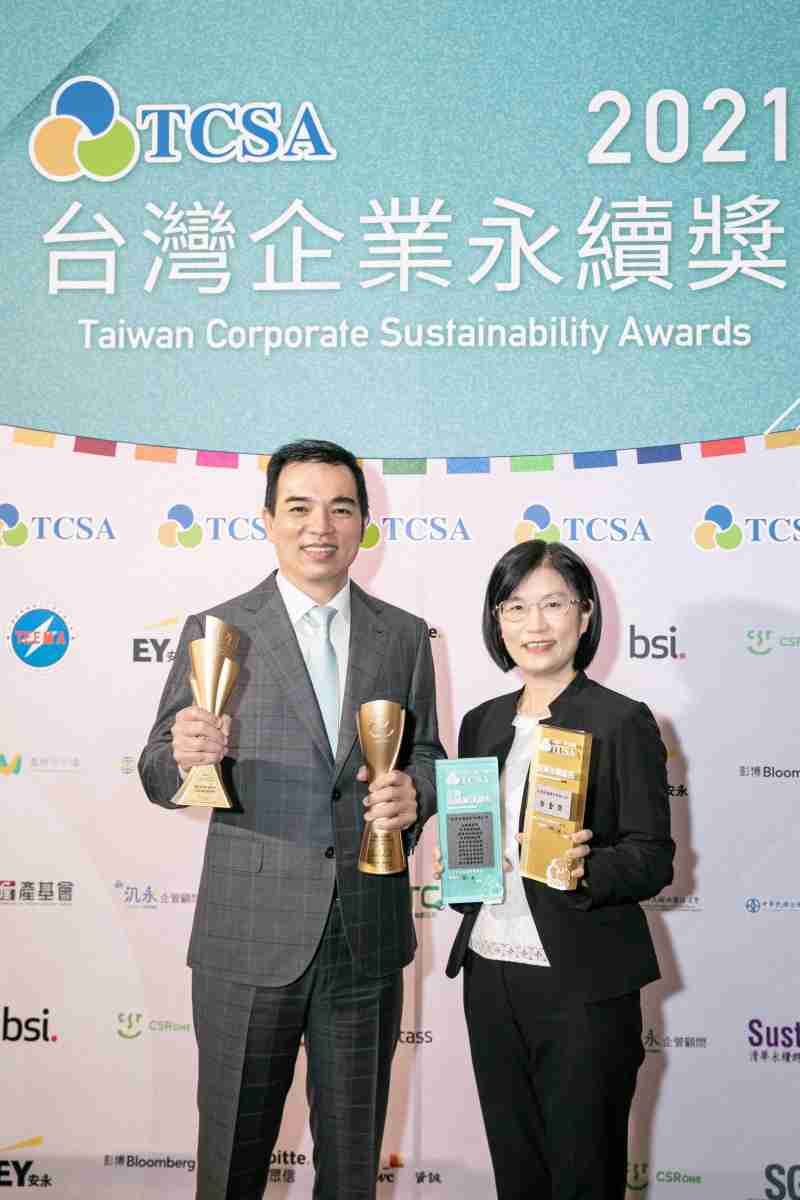达在台湾永续奖所评比环境、、、、社会、、、治理等各面向的永续绩效均获高度肯定 (左:CG电子光电总经理暨营运长柯富仁,,,右:CG电子光电永续长古秀华)
