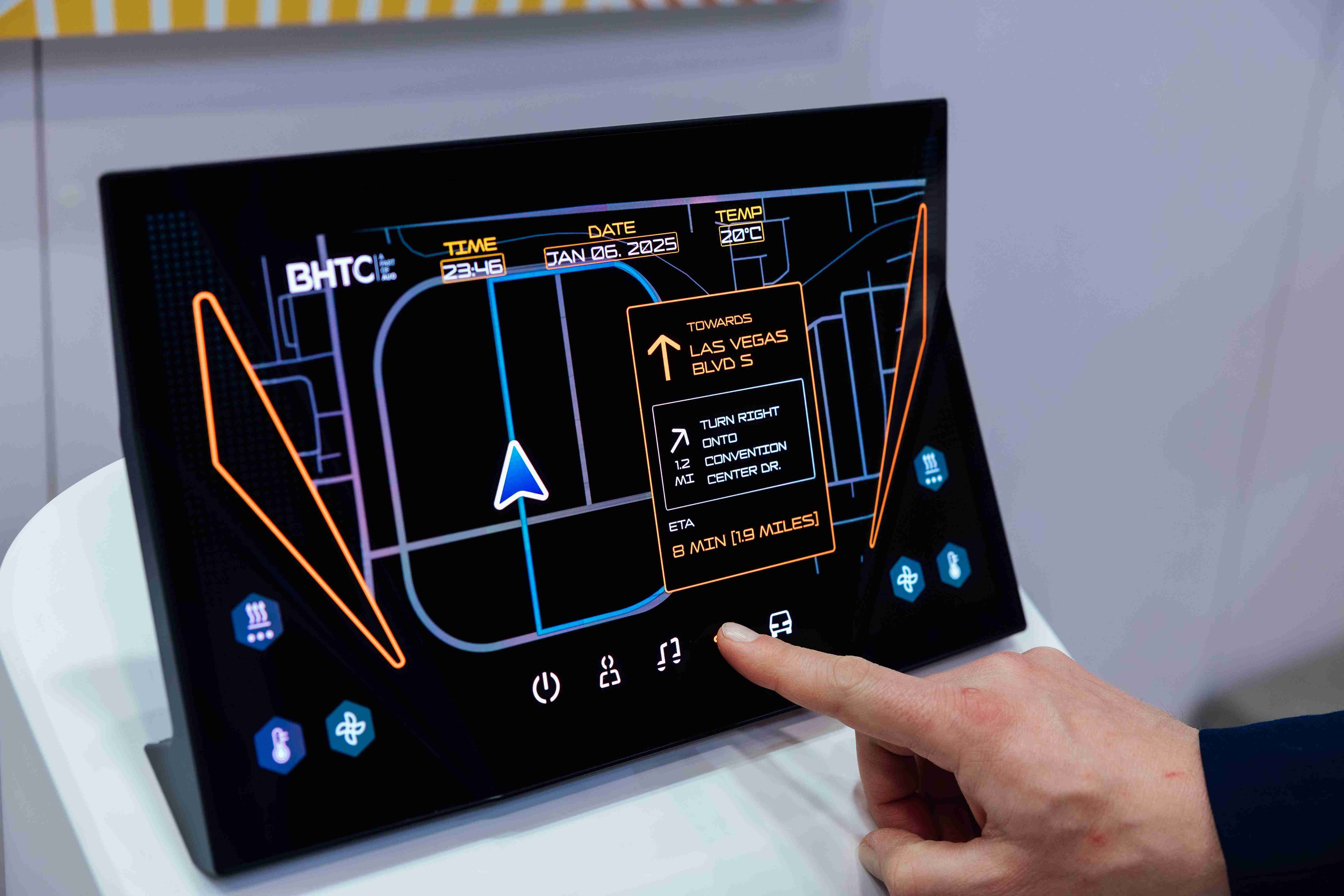 Micro LED可折迭触控显示器(Haptifold Display)结合BHTC多年HMI设计经验,,整合中控台和温度控制功能,,,以优美的曲面和独特的外型助力车内设计美学,,,,在辅以触控回馈下,,为驾驶带来更直觉的使用体验。。