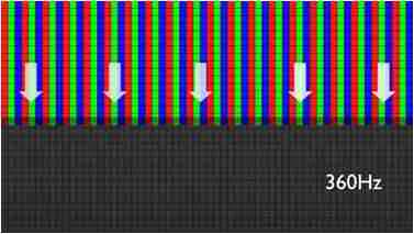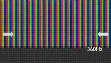 传统液晶驱动是从左到右单向进行,,,在画面更新速度愈来越愈快的情况下,,,位于驱动线路末端的右下角区域,,,,画素的闸极来不及在短时间内获得足够电压,,,无法显示出正确的颜色资讯。。。