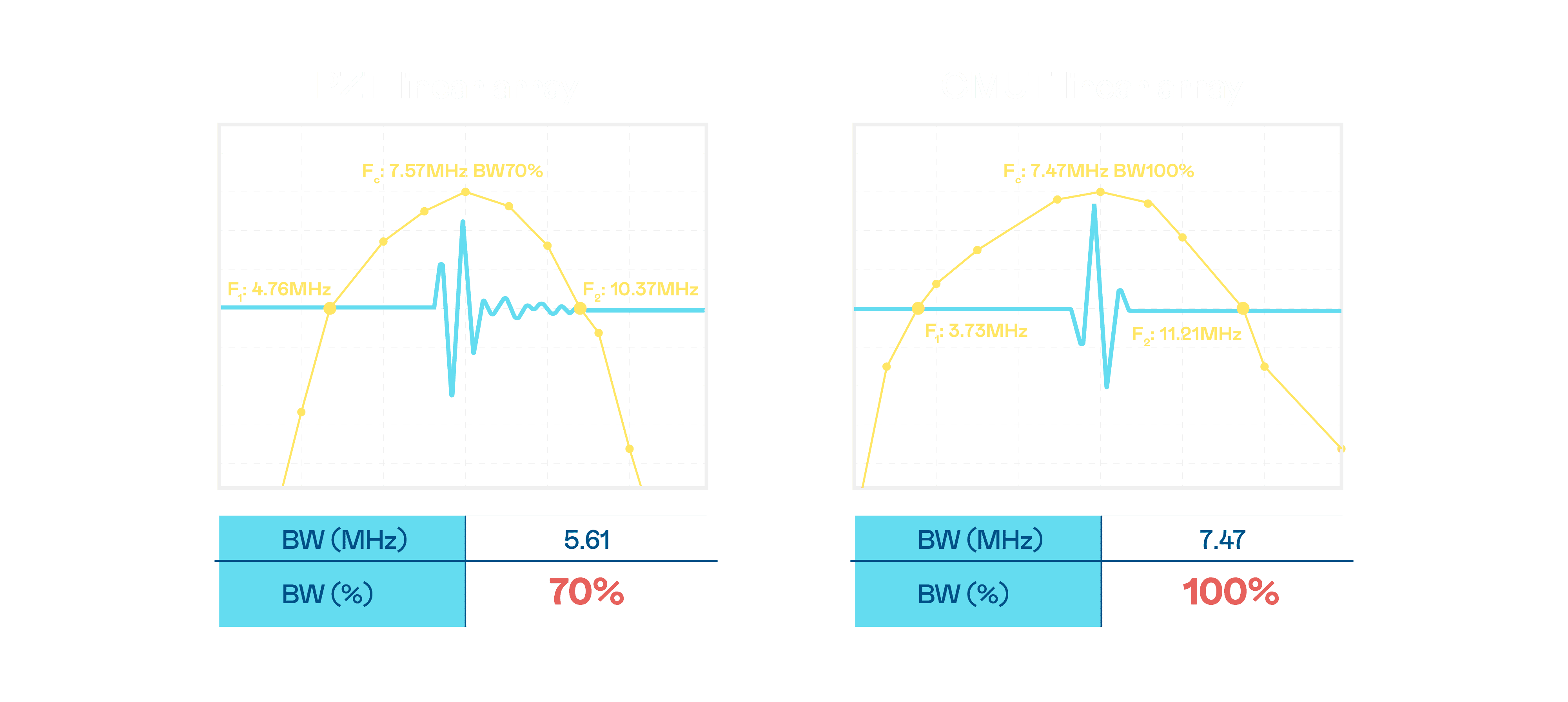 超音波影像的解析度高低,,,,首先取决于探头能发出的讯号频宽。。CG电子 CMUT 可提供高清晰的超音波讯号,,,,提供高频宽、、、、高灵敏度、、、、影像纹理细节更高的超音波影像,,,,协助医护人员缩短影像判读时间及利用精准的医疗影像进行诊断。。